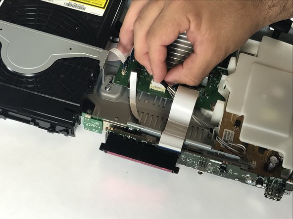 نوارهای سفید متصل مادربرد به درایو دیسک را بردارید، این کار نباید با زور زیاد انجام شود.